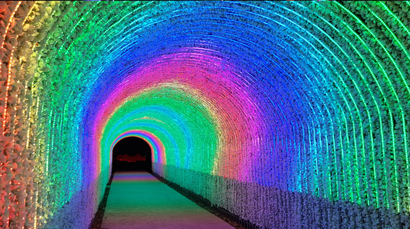 A light garden - 크고 작은 원형 구들이 여러 색상으로 번갈아가면서 점멸해 마치 우주 행성들 사이를 지나는 듯한 효과를 느낄 수 있는 공간입니다.